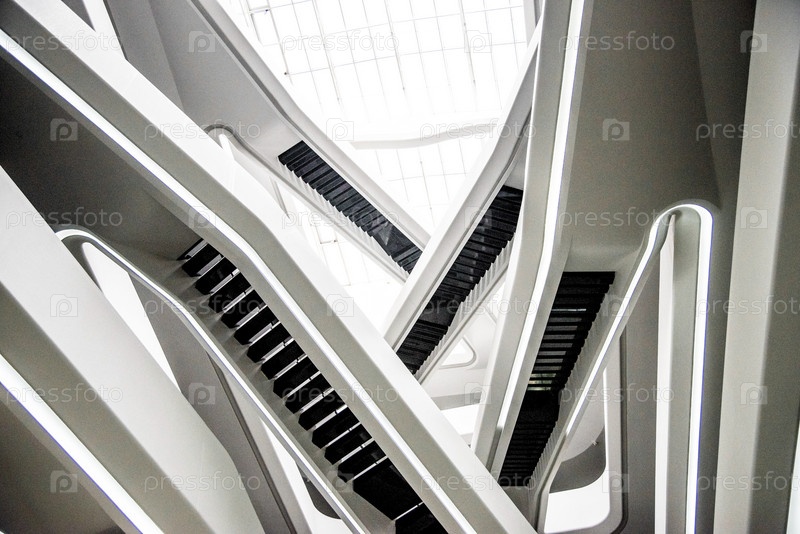Москва, Россия, июль 2017 г., интерьер бизнес-центра Dominion Tower, архитектор Заха Хадид