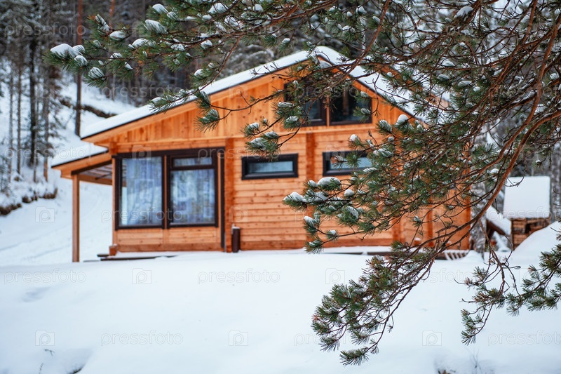 Зимний дом отдыха в лесу. Чистый воздух, отдых и релаксация. Единение с природой