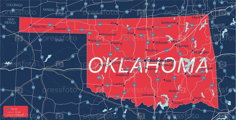 Подробная редактируемая карта штата Оклахома