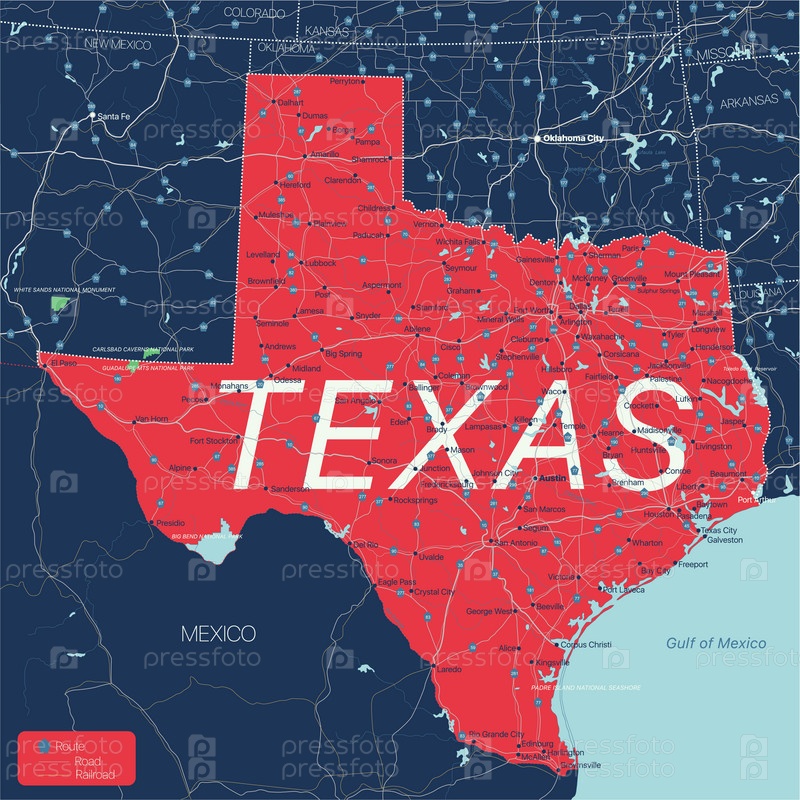 Подробная редактируемая карта штата Техас
