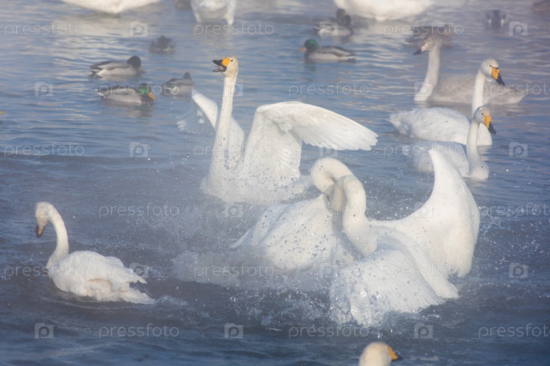 Красивые белые лебеди-кликуны