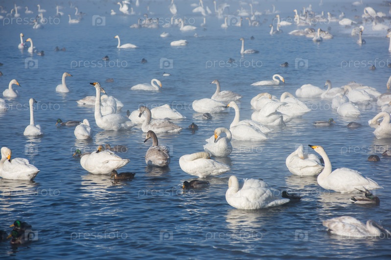 Красивые белые лебеди-кликуны