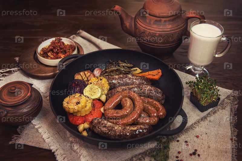 Колбаски гриль с овощами
