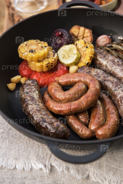 Колбаски гриль с овощами