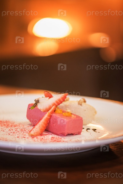 Фруктовое мороженое, украшенное клубникой