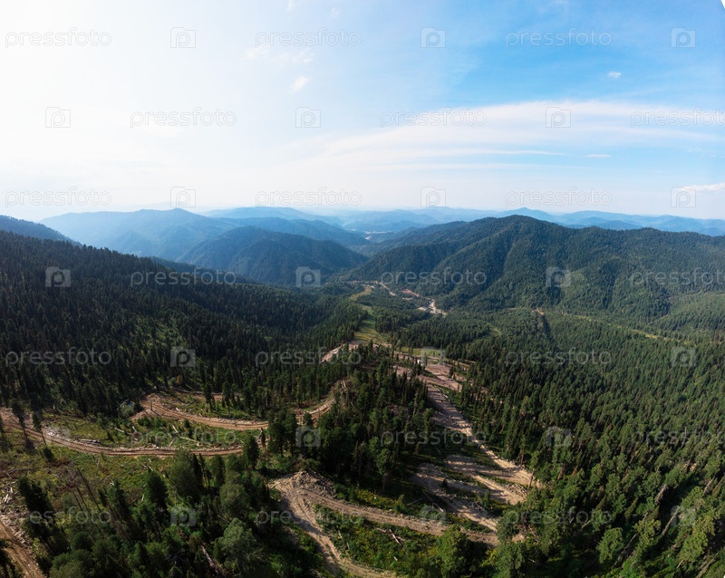 Красота дня в горах Алтая, панорамный снимок. Аэросъемка на дроне