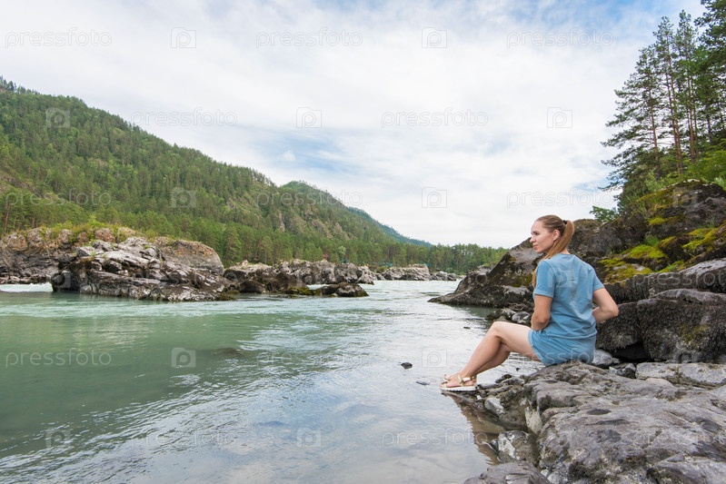 Женщина отдыхает у реки