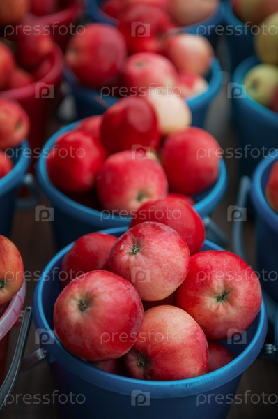 Ведро свежесобранных органических яблок. Концепция сбора урожая