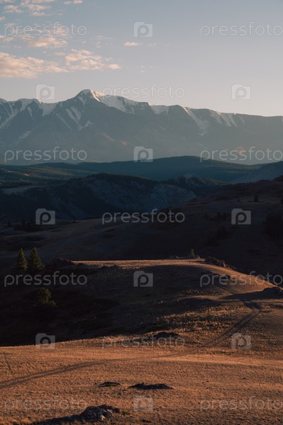 Закат над безмятежным горным пейзажем в горах Алтая