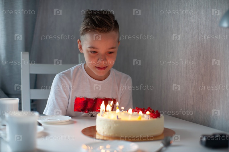 Счастливый мальчик празднует день рождения с тортом