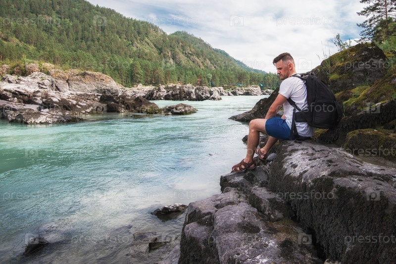 Мужчина отдыхает у реки