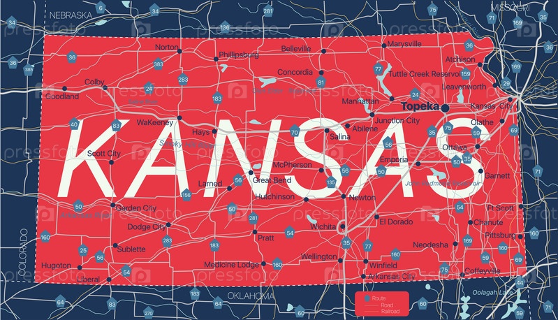 Подробная редактируемая карта штата Канзас
