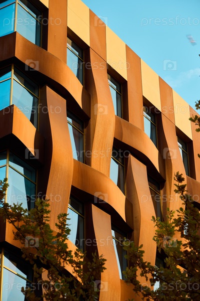 Инновационный фасад здания с волнообразным дизайном и современной эстетикой