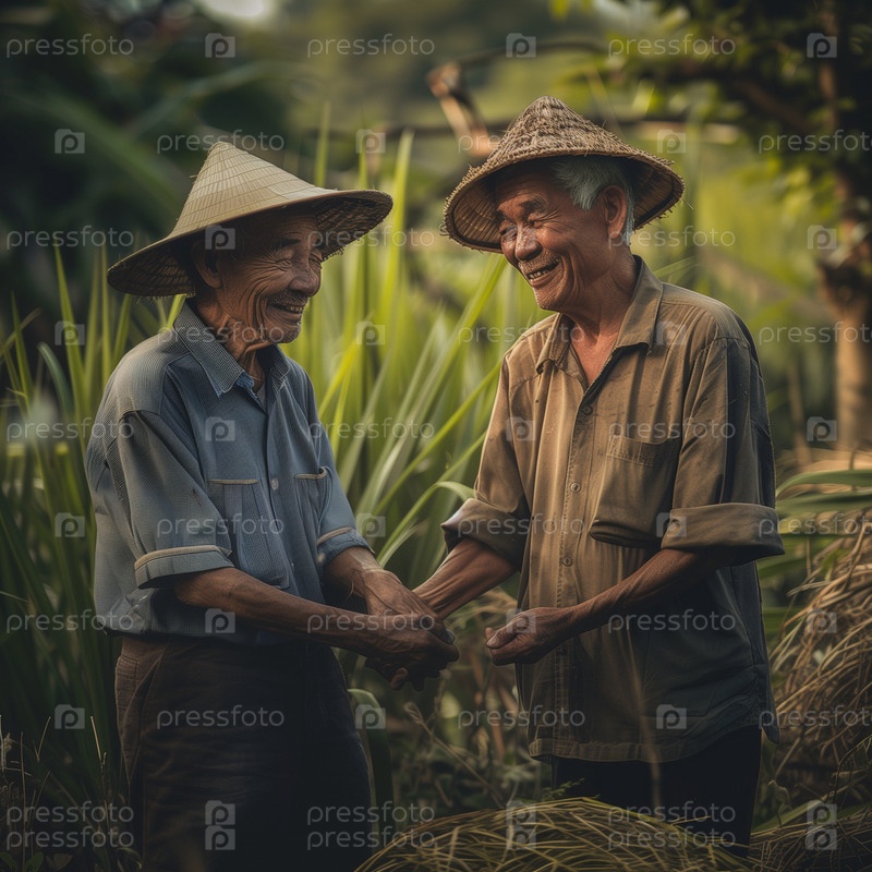 Дружба и совместная работа на полях во время посадки и сбора урожая. Дружба между мужчинами