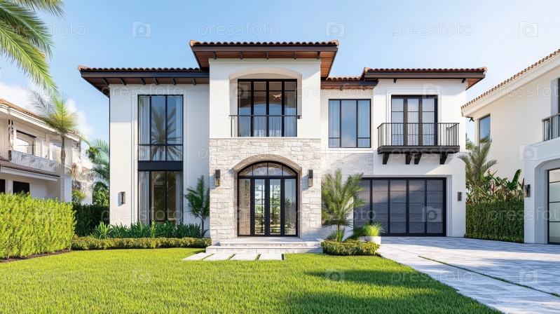 Современная роскошная вилла с элегантным дизайном и просторным экстерьером
