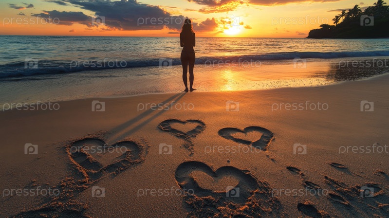 Романтический пляжный закат. Праздник любви в День святого Валентина