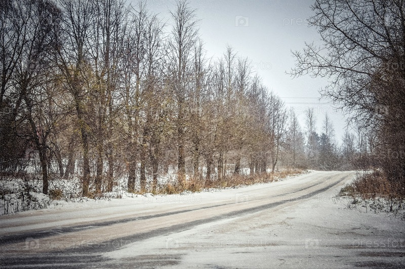 Зимний пейзаж - загородная деревенская дорога
