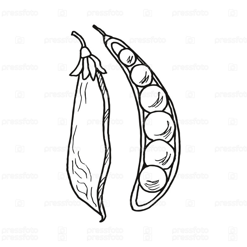 Контурный рисунок гороха в стручках, векторная иллюстрация