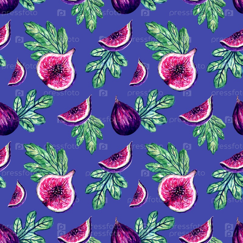 Спелые плоды инжира, выполненные акварелью в виде бесшовного узора