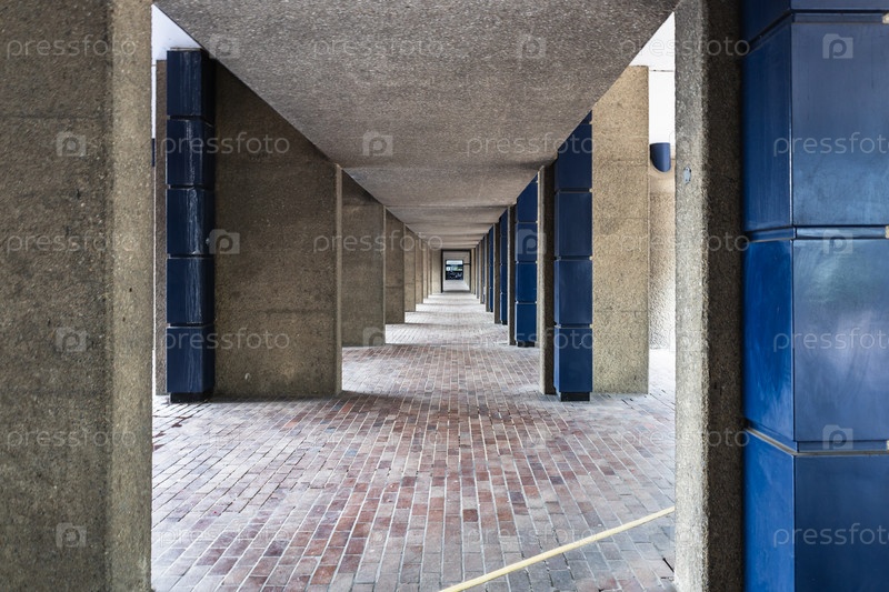 Коридор Барбикан-центра. Знаковая бруталистская архитектура с симметрией и бетонным дизайном