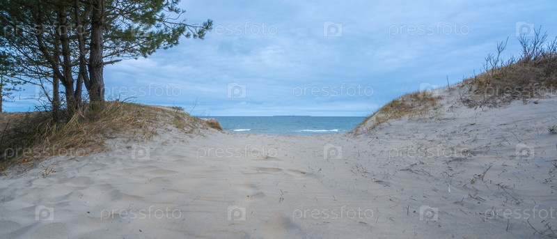 Лес на побережье Балтийского моря в пасмурный день осенью