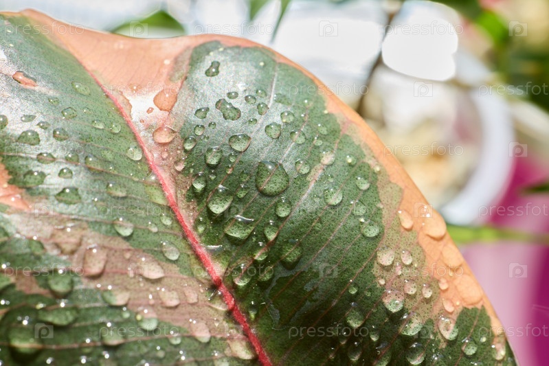 Очаровательный лист с каплями воды, которые блестят и сверкают на свету
