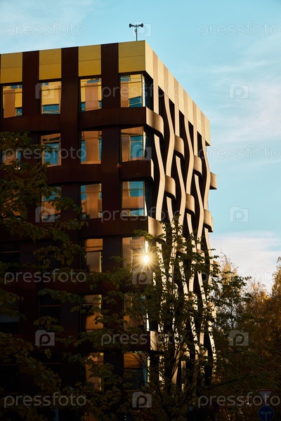 Современный архитектурный проект по-настоящему уникального здания на фоне прекрасного заката