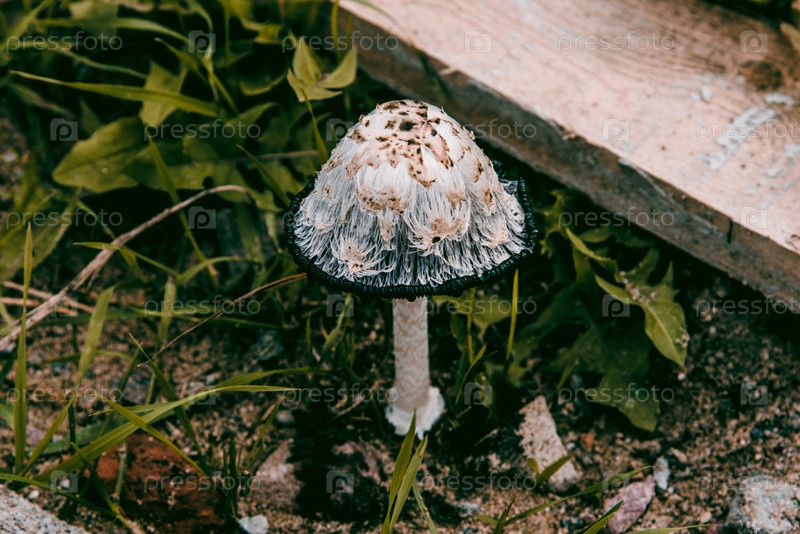 Грибы растут в тени в лесу на мху, сезон сбора урожая после дождей