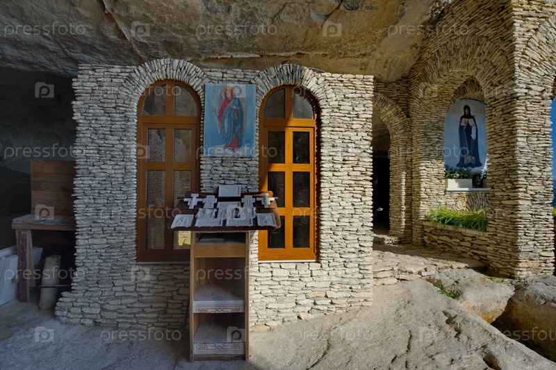 Мангуп-Кале, Россия. 04 октября 2024 года. Интерьер Свято-Благовещенского пещерного монастыря, вырубленного в скалах плато с древней крепостью