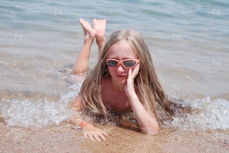 Девочка с русыми волосами лежит на воде