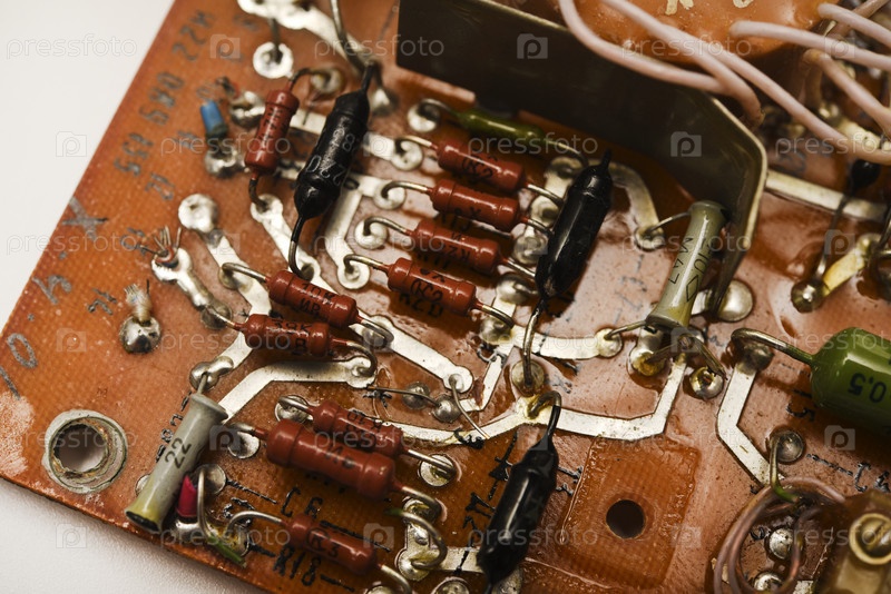 Старая печатная плата с микроэлементами. Полупроводниковые элементы в электронном устройстве