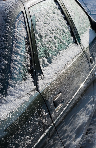 Автомобиль покрыт льдом и снегом от зимних штормов