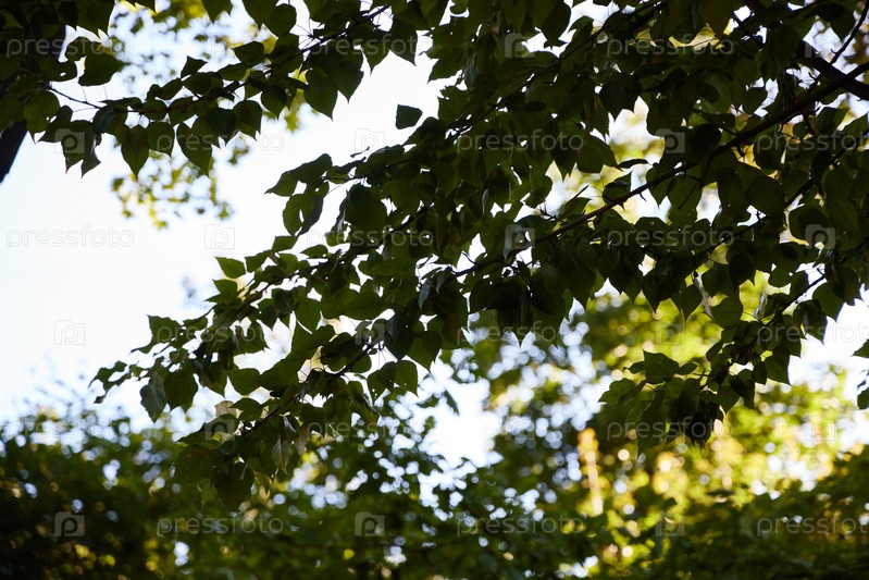 Безмятежные зеленые листья плавно покачивались на фоне ярко-синего неба, наполненного солнечным светом