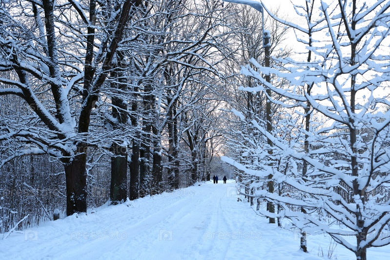 Красивый зимний пейзаж с прекрасной заснеженной тропой, тянущейся впереди