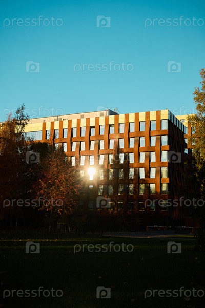 Современный архитектурный дизайн, создающий блики и яркость в солнечный день в городе