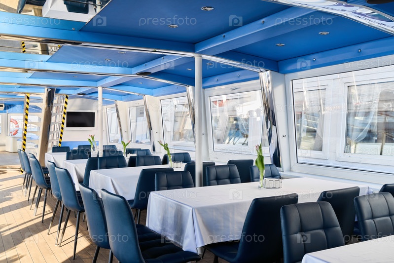 Элегантный интерьер столовой, прекрасно оформленный на современной и стильной лодке