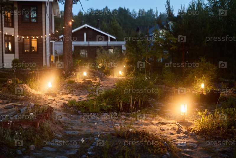 Очаровательный вечерний пейзаж с прекрасно освещенной дорожкой, которой могут насладиться все