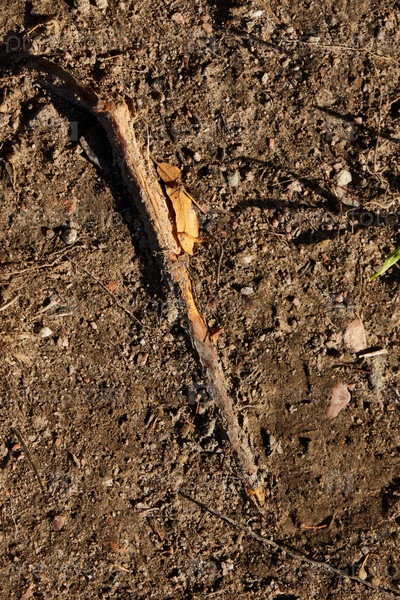 Натуральная палка мирно покоится на поверхности почвы в оживленной обстановке на открытом воздухе