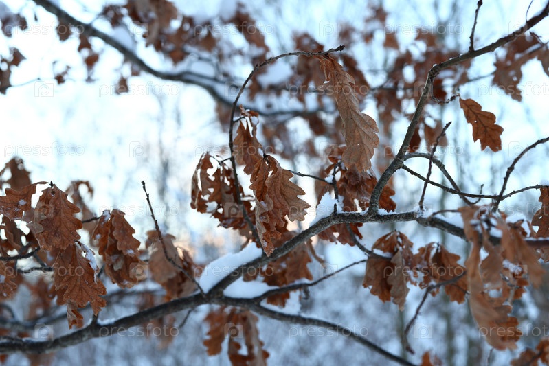 Красивые зимние ветви, украшенные листьями и блестящим снегом, создают живописные пейзажи