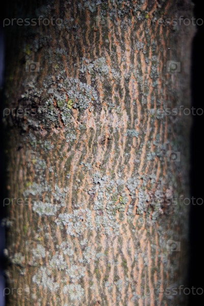 Крупный план текстурированной коры дерева с замысловатыми узорами из лишайников и мхов
