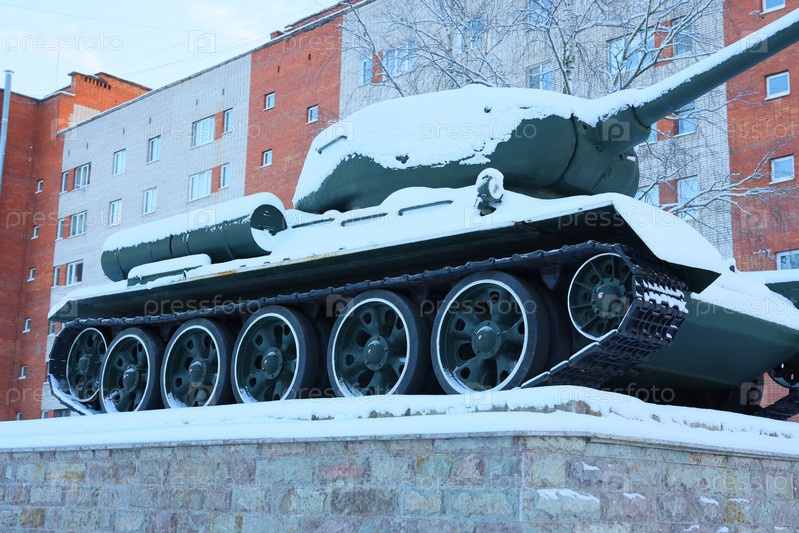 Памятник «Заснеженный танк» подчеркивает контраст между зимней погодой и историей