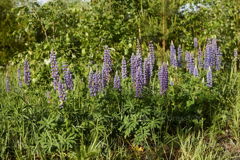 Яркие цветущие люпины, процветающие на пышном зеленом ландшафте, запечатленные в величественной красоте
