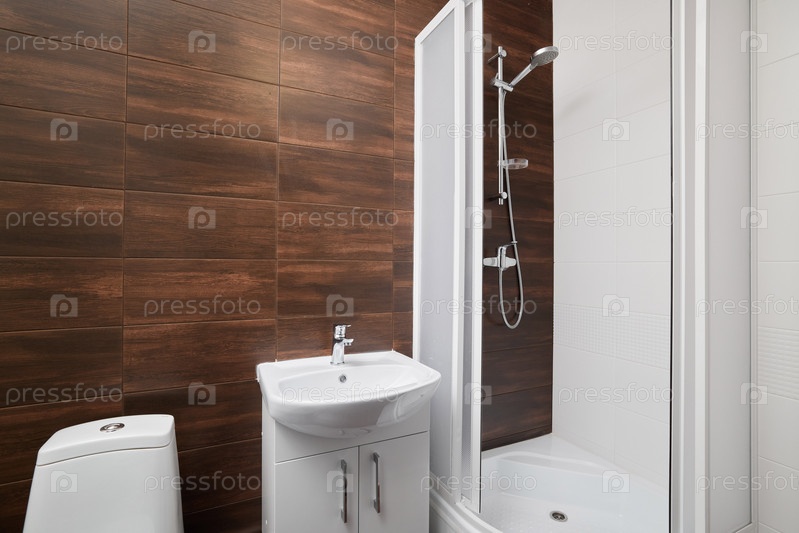 В этой современной ванной комнате имеется элегантный душ и стильные стены из деревянных панелей, создающие элегантность