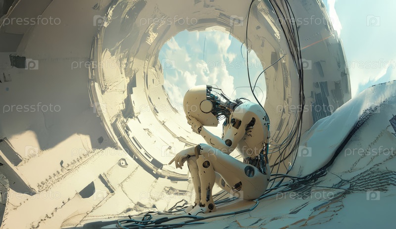 Человек, пытающийся уничтожить современные технологии и предотвратить появление роботов и искусственного интеллекта. Сгенерированное изображение