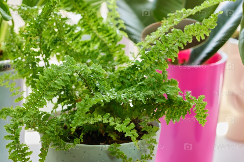 Пышные комнатные папоротники прекрасно растут в красочных и очаровательных декоративных горшках для дома
