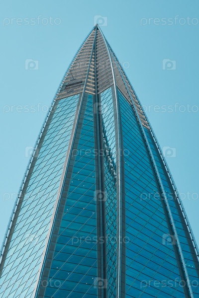 Современный небоскреб, возвышающийся и устремленный в небо, с невероятным дизайном