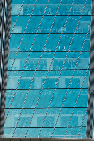 Потрясающий современный архитектурный стеклянный фасад со сложными отражениями и элементами дизайна