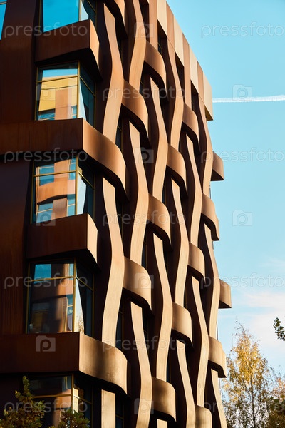 Современный архитектурный дизайн с уникальным волнообразным фасадом, привлекающим внимание