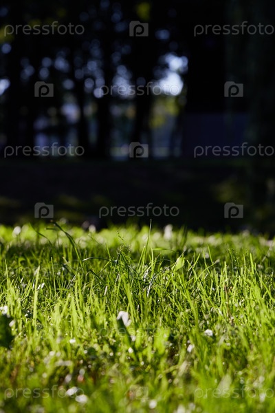 Пышная и яркая зеленая трава, залитая прекрасным естественным светом дневных условий