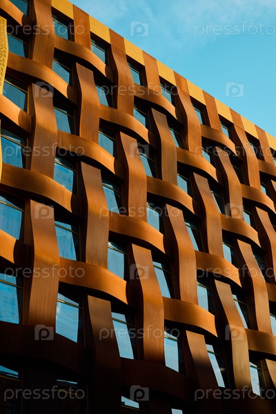 Инновационный архитектурный фасад с уникальным плетеным металлическим дизайном для современных зданий